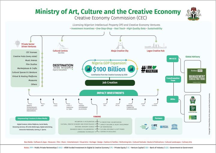 The Federal Ministry of Art, Culture and the Creative Economy (FMACCE) in Nigeria has unveiled a strategic roadmap to grow the country’s creative economy to $100 billion in GDP contribution by 2030.