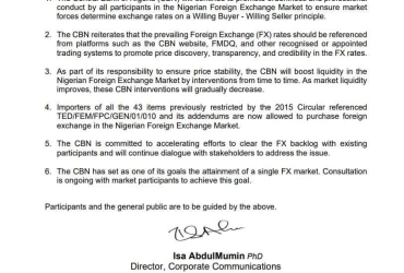 CBN Restates Commitment To Boost Liquidity in FOREX Market 1. The Central Bank of Nigeria (CBN) will continue to promote orderliness and professional conduct by…